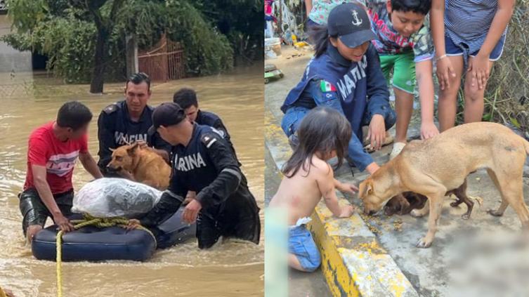 Las voraces lluvias que azotaron a diversos municipios de cinco estados del país han dejado numerosas afectaciones, entre ellos perritos, gatitos, vacas y gallos que tuvieron que ser rescatados por la Marina.