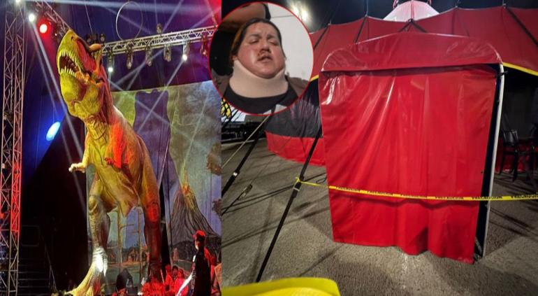 Colapsó estructura en Circo de los Dinosaurios y lesionó mujer 🎦