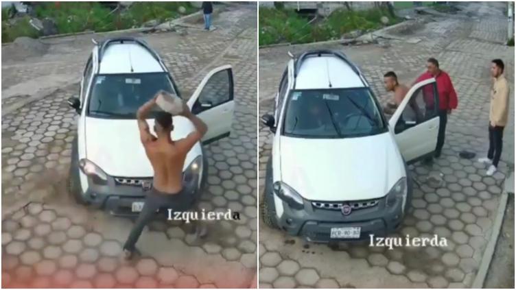 Los hechos fueron grabados por una cámara de seguridad la tarde del 24 de abril en una colonia del Estado de México, donde tres hombres rodearon el carro de uno de sus vecinos para lanzarle piedras.