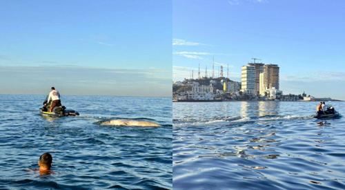 De inmediato montaron un operativo para remolcar el cuerpo del animal mar adentro, esto con el fin de mantener condiciones sanitarias en la playa y que pueda continuar con la cadena alimenticia.