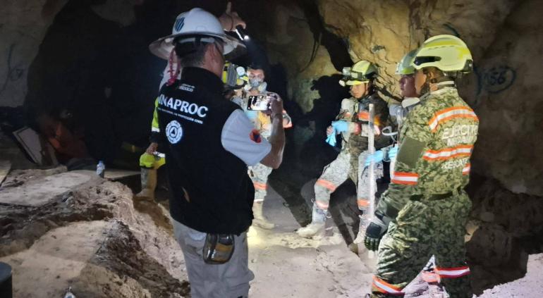A casi un mes del siniestro, autoridades mantienen un operativo permanente con la participación de Protección Civil, Fuerzas Armadas y personal especializado, quienes trabajan de manera continua para avanzar en condiciones seguras dentro del yacimiento.