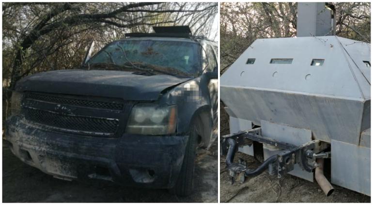 La Secretaría de Seguridad Pública de Tamaulipas informó que localizaron vehículos con blindaje artesanal ocultos entre la maleza en el municipio fronterizo de Méndez.