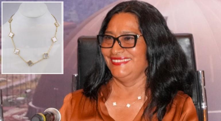 La denuncia consiste en que la presidente municipal exhibió y presumió su collar de la marca Van Cleef & Arpels, el cual declaró como "regalo de ciudadanos".