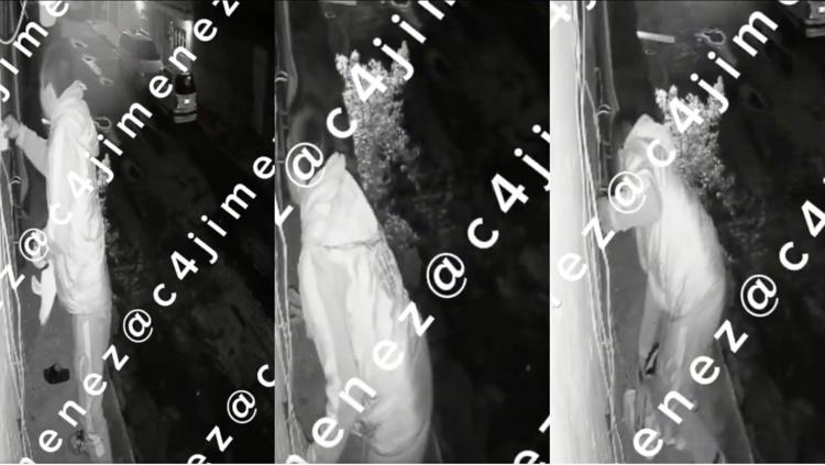 El video, difundido en la red social X (antes Twitter) por el reportero policiaco Carlos Jiménez (@c4jimenez), muestra el momento en que un sujeto trepa un árbol y la barda de la vivienda para alcanzar los tenis.