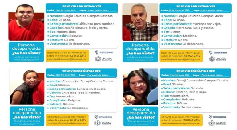 Se trata de Sergio Eduardo Campos Marín, de 62 años; Concepción Donají Cavazos Corona, de 58 años; Donají Concepción Campos Cavazos, de 30 años, y Sergio Eduardo Campos Cavazos, de 25 años.