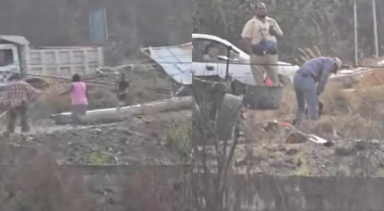 En las imágenes se ve a una mujer que llegó al lugar del accidente e intentaba llegar hasta un cuerpo tendido en la terracería.
