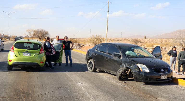 El conductor de un vehículo Nissan, Sentra de color negro, perdió en control al tomar la curva en la Vialidad Los Nogales y Sacramento. Terminó en sentido contrario y chocó levemente contra un Ford, Fiesta.