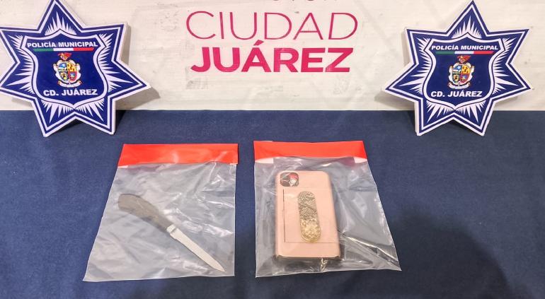 Con los datos obtenidos implementaron acciones de búsqueda y lograron localizar metros más adelante en el cruce de las calles Chichén Itzá y Bonampak, en la citada colonia, a una adolescente que reunía las características proporcionadas, por lo que fue abordada y al realizarle una inspección preventiva se le localizó un cuchillo y un teléfono celular propiedad de la víctima, por lo que al ser plenamente reconocida procedieron a su arresto.