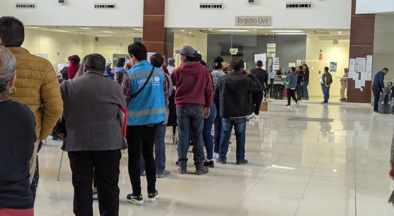 Más del 70% de las personas que hacen fila en el Registro Civil de las oficinas de Gobierno del Estado en Pueblito Mexicano están acudiendo para entregar sus documentos y completar su inscripción en el programa estatal "Matrimonios Colectivos".