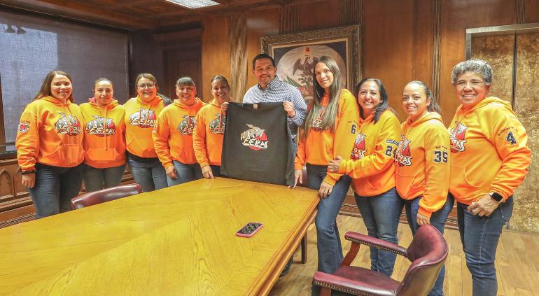 El Presidente Municipal, Cruz Pérez Cuéllar, recibió en su despacho a las integrantes del equipo de basquetbol Fieras, quienes representarán a México en el Campeonato Mundial de Basquetbol en Mallorca, España.