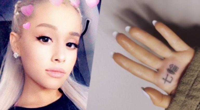 Ariana Grande se hizo un tatuaje en la palma, con letras japonesas que deberían significar “7 anillos” pero su traducción es otra muy distinta.