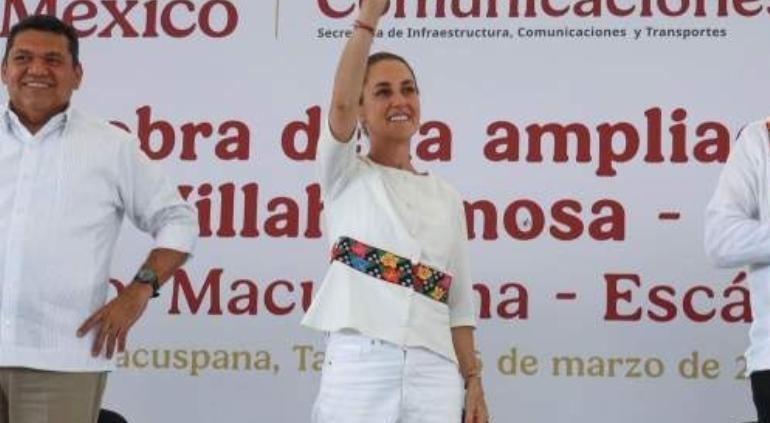 "El día de hoy inician los trabajos para esta carretera. También vamos a ayudar a Javier para que puedan repavimentarse todas las carreteras de Tabasco y acabar con los baches", expresó la mandataria.