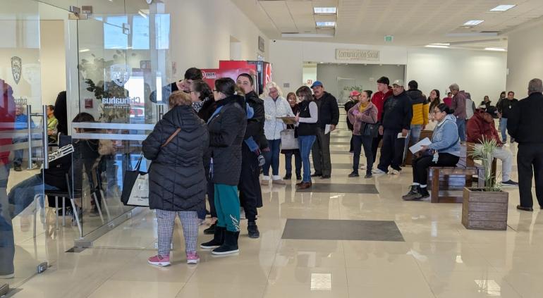 En Pueblito Mexicano, ciudadanos hacen fila desde tempranas horas para pagar el predial en las oficinas de Desarrollo Urbano de Ciudad Juárez. El martes por la mañana, se observó un aumento significativo en la afluencia de personas que buscan cumplir con esta obligación fiscal.
