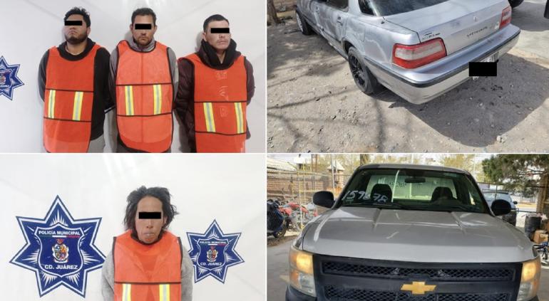Elementos de la Secretaría de Seguridad Pública Municipal arrestaron a cuatro personas por su presunta responsabilidad en la comisión del delito de posesión de vehículo con reporte de robo en hechos distintos.