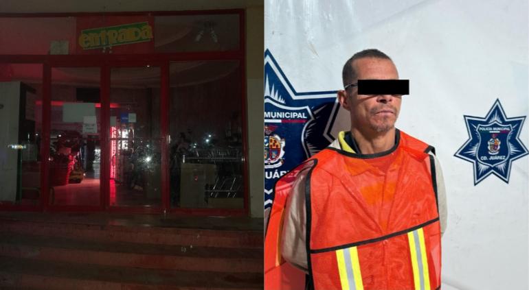 Durante patrullaje en la avenida 16 de Septiembre y calle Noche Triste, en la zona Centro, sorprendieron a un sujeto que dañaba la entrada de una tienda Waldos.