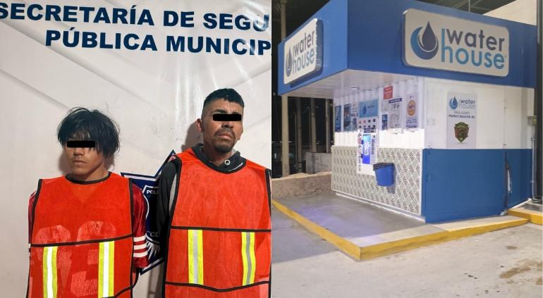Durante patrullaje en las calles Tezozómoc y Salvárcar, en la colonia Tierra Nueva, sorprendieron a los sujetos cuando dañaban el expendio de agua con la intención de robar las monedas.