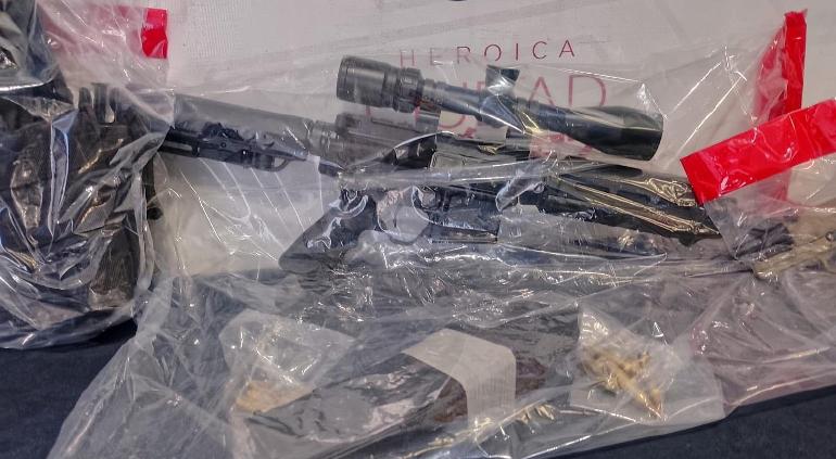 Elementos de la Secretaría de Seguridad Pública Municipal aseguraron un arma larga, un arma corta, ambas con cargadores abastecidos, así como un chaleco antibalas, tras una inspección en un vehículo estacionado en la vía pública.
