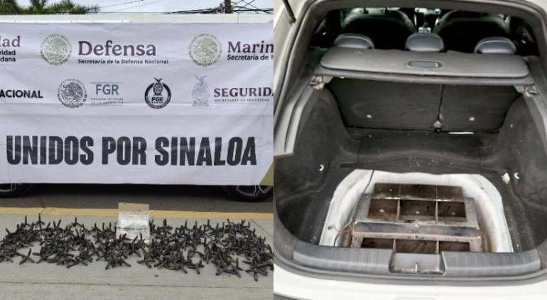 Autoridades aseguraron un auto con balas y ponchallantas en Culiacán, tiene un dispositivo que permite arrojar las puntas mientras va en movimiento.