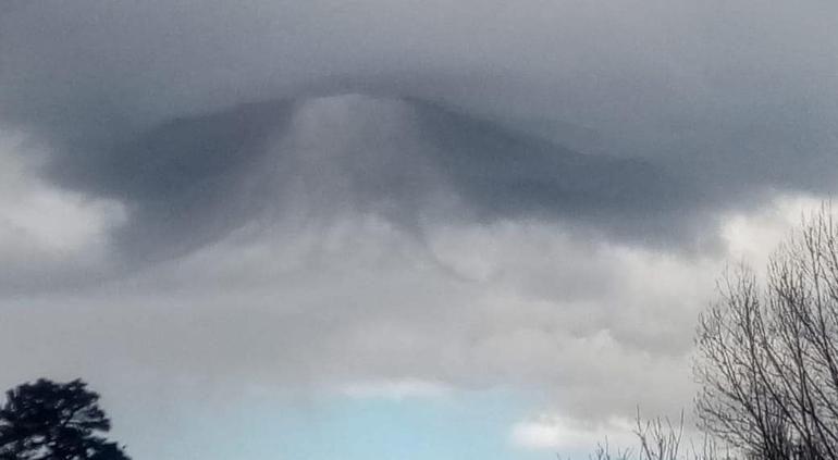 En las imágenes se puede observar una figura similar a un volcán, debido a que había un agujero en el cielo.