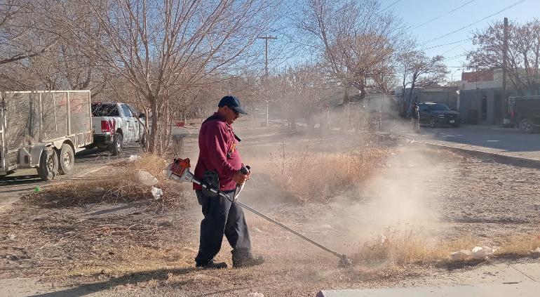 Personal de la Dirección de Parques y Jardines llevó a cabo este martes labores de limpieza y mantenimiento en el parque lineal Parajes del Sur, ubicado en el cruce de las calles Campo Grande y Tierra de Fuego.