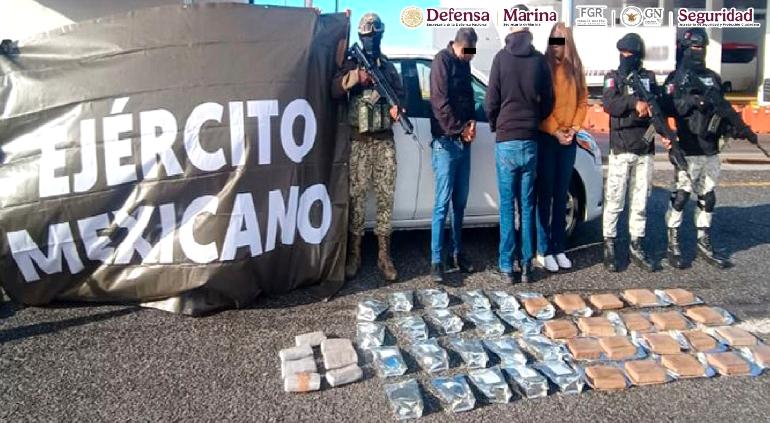 Al parecer, se trata de un hombre y una mujer de 48 años, así como un adolescente quienes transportaban por la autopista Mexicali-Tijuana 42 kilogramos de fentanilo y siete kilogramos de heroína.
