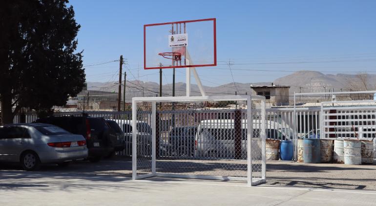 Beneficiaron al CAM 7506 con pintura y resane general de las aulas, la construcción dea cancha, fabricación de suministro de canastas con tablero, así como sus respectivos aros y porterías.