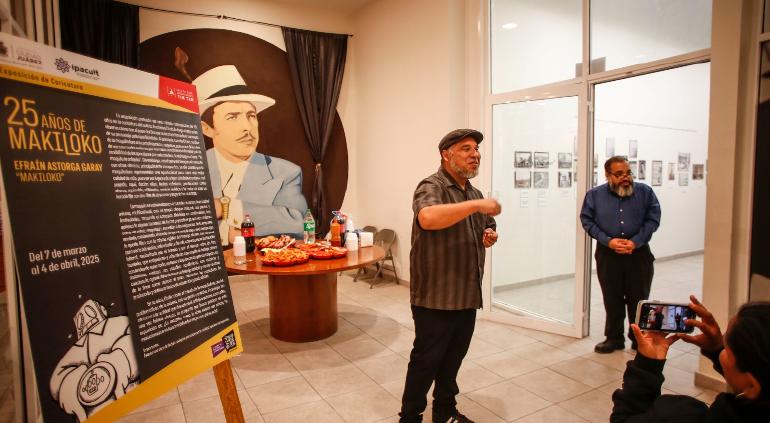 El Instituto para la Cultura del Municipio de Juárez (IPACULT) inauguró la exposición "25 años de Makiloko" en la Sala de Arte Germán Valdés Tin Tan, un homenaje a la trayectoria del caricaturista Efraín Astorga Garay.
