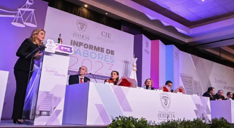Fue en las instalaciones del Hotel Sheraton, donde se realizó una sesión solemne del Tribunal Superior de Justicia donde se rindió un informe de las principales acciones del Poder Judicial del Estado de Chihuahua durante el año 2023.