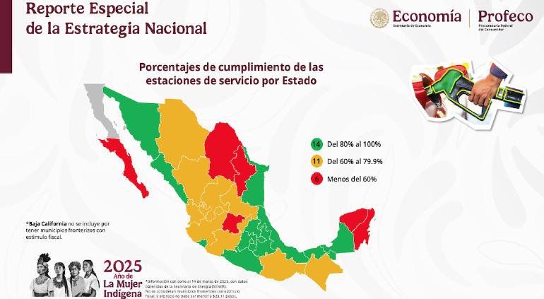 Durante la presentación del monitoreo semanal de precios, Escalante Ruiz explicó que, tras la firma de la estrategia nacional para estabilizar el costo del combustible, el porcentaje de estaciones que ofrecen gasolina por debajo de los 24 pesos aumentó del 25.2% al 68.8% a nivel nacional.