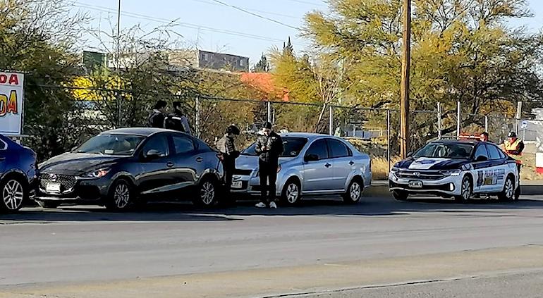 La mañana de este jueves se registró un ligero choque en la mini glorieta ubicada en la intersección de la calle Zarco y 80, en la ciudad de Chihuahua. En el incidente se vieron involucrados tres vehículos: un Mazda azul, un Mazda gris oscuro y un Chevrolet Aveo gris.