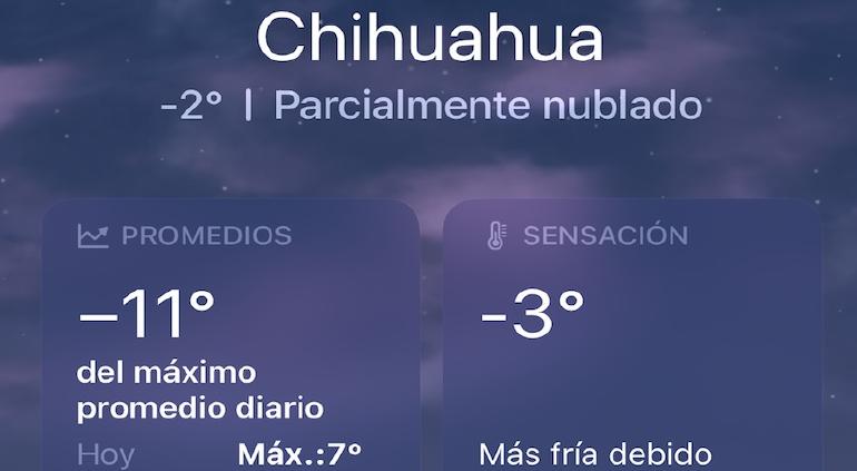 Hoy la ciudad de Chihuahua amaneció a -2°C con una sensación de 3.