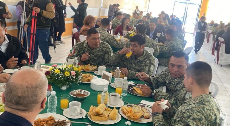 Como parte de los festejos, los elementos del Ejército Mexicano disfrutaron de un desayuno y de igual manera, les rifaron algunos regalos como cafeteras y televisiones.