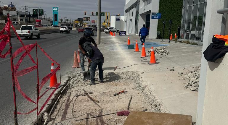 La reconocida concesionaria de vehículos Volkswagen en la ciudad inició la construcción de banquetas en el exterior de sus instalaciones, ubicadas en la avenida Teófilo Borunda, en cumplimiento con los requerimientos del Gobierno Municipal a través de la Dirección General de Desarrollo Urbano.