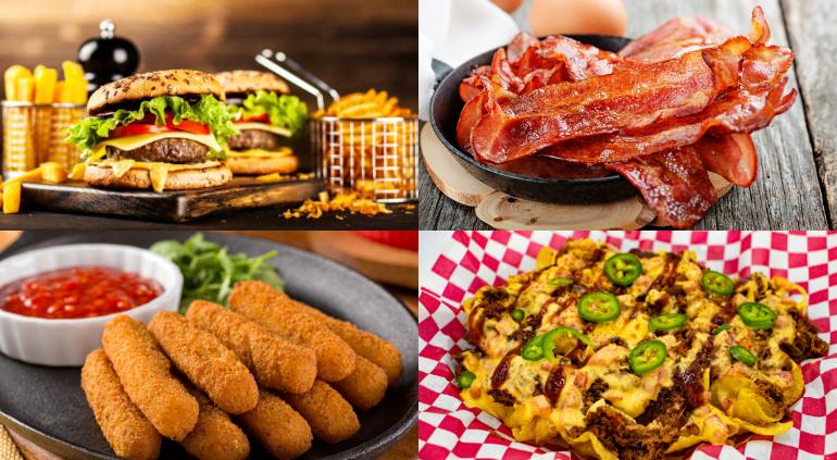 Papas fritas, nachos y dedos de queso.- alimentos procesados que se fríen, tienen aditivos, así como altas cantidades de sodio.