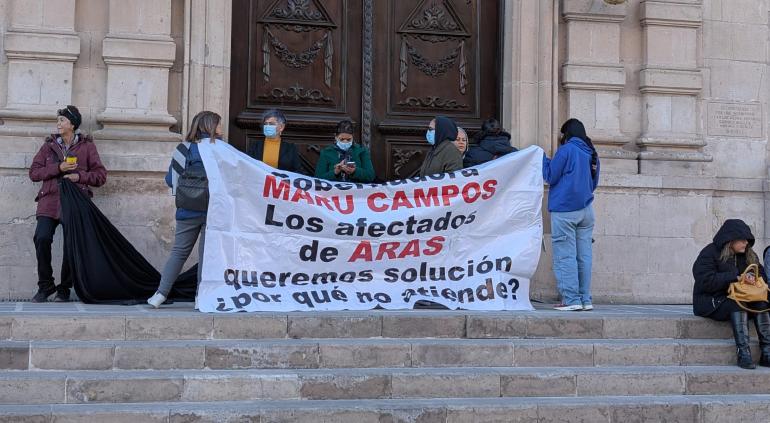 Este miércoles por la mañana, las víctimas y defraudados de la empresa Aras se congregaron frente al Palacio de Gobierno para manifestarse y exigir justicia, informe de protesta bloquearon las entradas y salidas del recinto.
