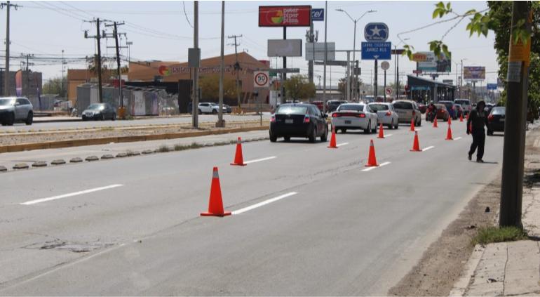 La Coordinación General de Seguridad Vial delimitó los carriles en un tramo de la avenida Tecnológico, que abarca desde la calle Simona Barba hasta la Pedro Rosales De León.