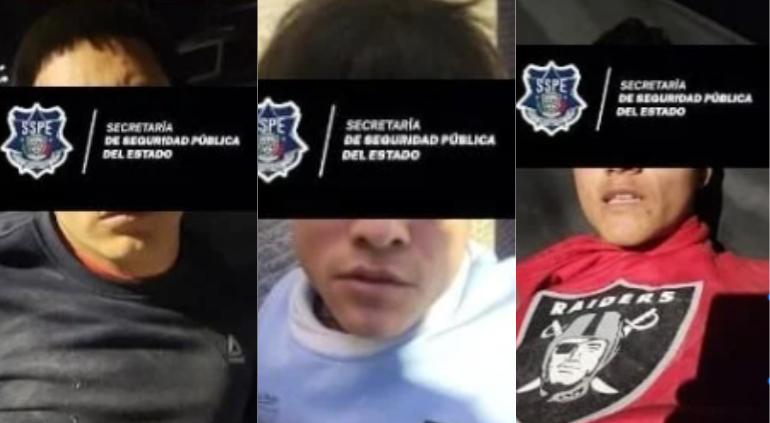 La Secretaría de Seguridad Pública Estatal dio a conocer este día el arresto de José Domingo G. R. de 19 años, Yeremi E. M. de 20 y Javier N. R. de 19, señalados por el secuestro de cinco extranjeros.
