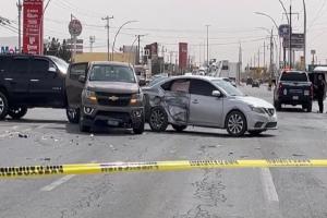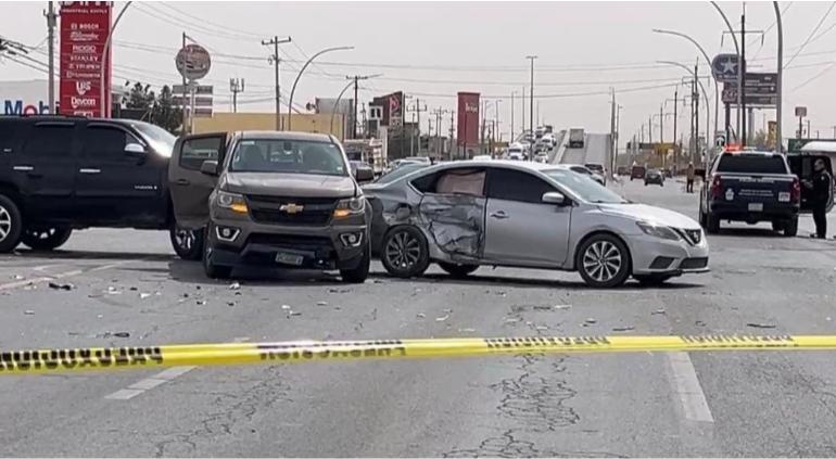 En el lugar, el conductor de una camioneta Yukon en clor negro fue atcdo a balazos en una gasolinera, el cual al intentar huir de los agresores dio marchae en reversa y chocó contra dos vehículos más.