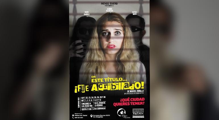 A partir de hoy 22 de septiembre y hasta el 10 de octubre podrás disfrutar de la obra de teatro “Este título fue acribillado” de José Manuel Bonilla y bajo la dirección de Gabbo Reyes.