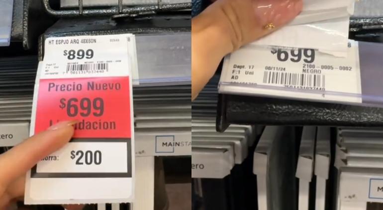 En la grabación, la usuaria muestra etiquetas de productos que supuestamente fueron aumentados antes del Buen Fin para luego ser “rebajados” artificialmente.
