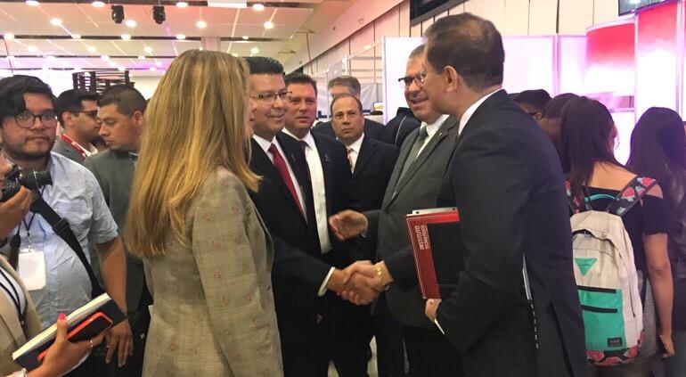 El presidente municipal, Armando Cabada Alvídrez encabezó el evento de inauguración de la Expo Automatización 2019, en el Centro de Convenciones Cuatro Siglos en donde estuvieron también la secretaria de Innovación y Desarrollo Económico, Alejandra De la Vega Arizpe; Rodolfo Martínez, Administrador de la Ciudad; John Tavenner, cónsul general de Estados Unidos y Rogelio González, presidente de la Canaco, además de Jesús Martín Márquez del Clúster de Manufactura Avanzada.