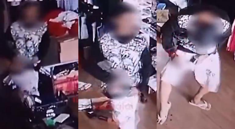 En el video se ve cómo el sujeto se dirigía hacía la salida de la tienda de ropa, cuando de pronto se dispara el arma en la pierna.