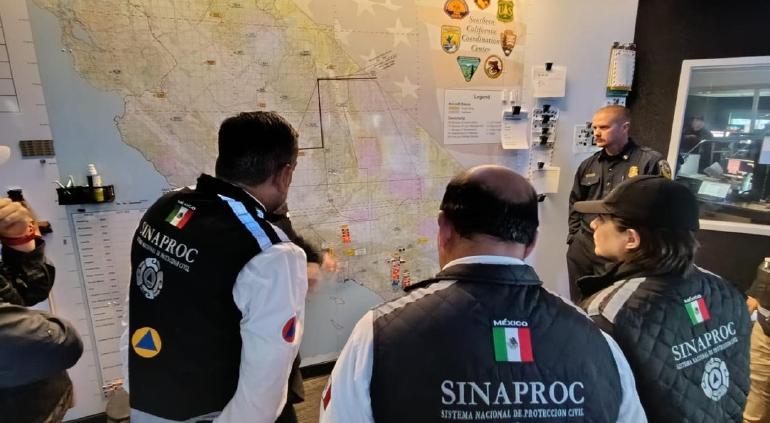 Posteriormente, el equipo mexicano, integrado por elementos de la Secretaría de la Defensa Nacional (Sedena), la Comisión Nacional Forestal (Conafor) de la Semarnat y la Coordinación Nacional de Protección Civil (CNPC), se trasladó al Centro de Operaciones de Riverside, California. Allí participaron en una sesión informativa liderada por CAL FIRE, como parte de los protocolos binacionales para el fortalecimiento de estrategias conjuntas.