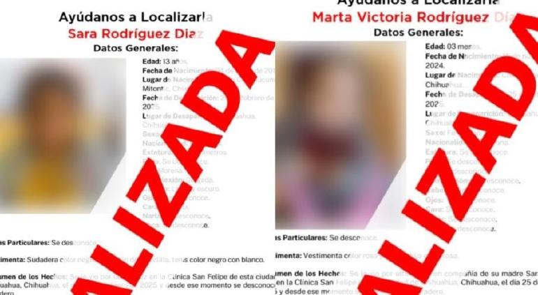 Las menores habían sido reportadas como ausentes el pasado martes 25 de febrero, luego de ser vistas por última vez en una clínica ubicada en la colonia San Felipe de la ciudad de Chihuahua.