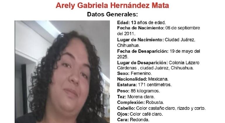La tarde de este miércoles, la Fiscalía General del Estado dio a conocer la localización de Arely Gabriela Hernández Mata, de 13 años de edad.