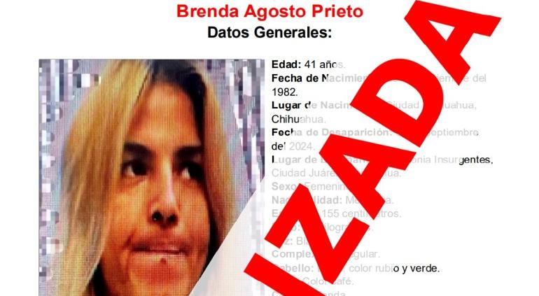 Se trata de Brenda Agosto Prieto, de 41 años de edad, quien había sido vista por última vez en Ciudad Juárez el pasado 9 de septiembre del presente año.
