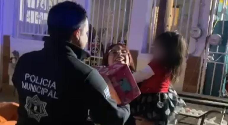 Luego de que nadie atendió la invitación a celebrar el cumpleaños número 2 de una pequeña en la colonia San Lorenzo, elementos de la Policía hicieron acto de presencia y le llevaron regalos.