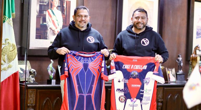 El Presidente Municipal, Cruz Pérez Cuéllar, recibió en su oficina a Jorge Muñiz, organizador del evento Una Clínica Para Porteros: JM1 Keeper Clinic, quien solicitó apoyo para difundir esta actividad que se llevará a cabo el sábado 12 y domingo 13 de abril.