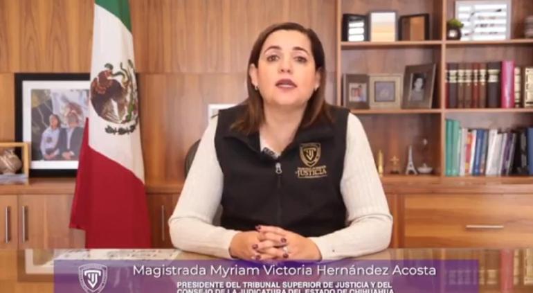 La magistrada presidenta del Tribunal Superior de Justicia del Estado de Chihuahua, Myriam Hernández, anunció oficialmente que se retirará de su puesto el 31 de agosto de 2025 y que no participará en el proceso de elección popular para personas juzgadoras que se llevará a cabo en junio de este año.