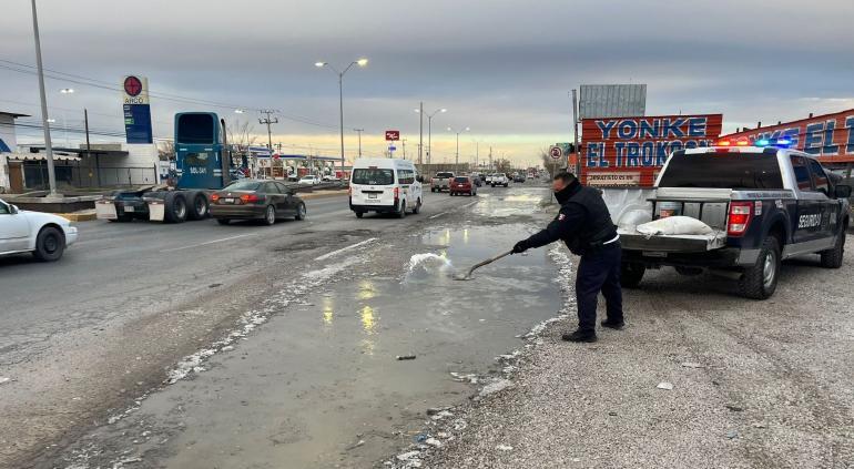 Este viernes, esparcieron sal y arena en poco más de 40 calles donde se congeló el pavimento, con la intención de evitar un mayor número de accidentes.